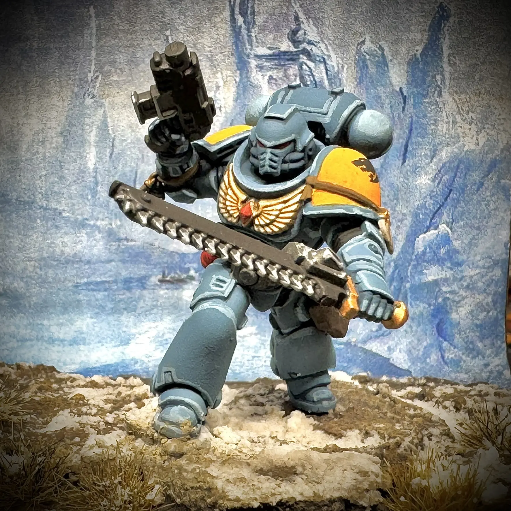 August 2025 sees a mini from one of my favourite factions of 40k, the Space Wolves. The Blood Claw mini has a fantastic dynamic pose, and lends itself perfectly to a sculted display. Below you will see the mini that the GW 'Eavy Metal team painted for the Warhammer Community website and also our take on the mini with its display base.